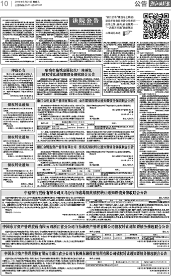 中国东方资产管理股份有限公司浙江省分公司与杭州东融投资管理有限公司债权转让通知暨债务催收联合公告