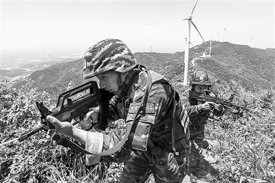 5月下旬,武警浙江省总队组织特战部分队在湖州、绍兴、衢州等地开展“魔鬼周”极限训练。特战官兵们在历时7昼夜的训练中,每天要保持不少于18小时的训练时间,负重30公斤,完成武装泅渡、崖壁攀爬、山林地捕歼、特种射击等40余个训练科目。图为特战官兵开展山林地捕歼训练。