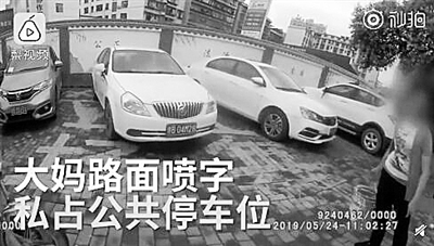 停车位上喷广场舞专用大字 大妈:我们要锻炼身体的