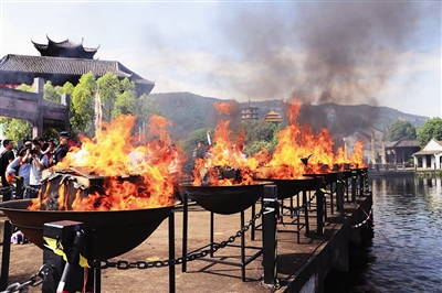 6月3日,浙江省禁毒委会同金华市禁毒委在东阳横店影视城举行“横店销烟”活动暨金华全民禁毒宣传月活动启动仪式。