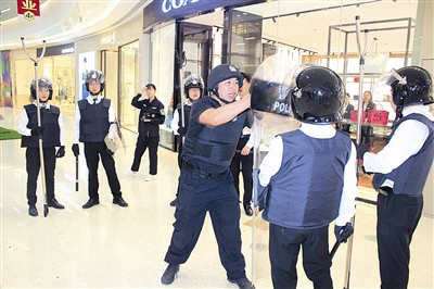 近日,台州市公安局椒江区分局巡特警大队民警来到辖区台州青悦城商场,对商场保安员进行了安全防范、应急处置等培训,以提升保安员的应急处置能力。