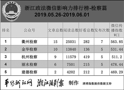 本期检察院榜上也出现了一匹“黑马”,“衢州检察”登上冠军之位,该公众号的《衢州市人民检察院依法对方韧涉嫌玩忽职守罪立案侦查》和《衢州市人民检察院依法对毛月铭涉嫌玩忽职守罪立案侦查》2篇文章均获得“1万+”阅读数,冲入热文榜前三甲。“鹿城区人民检察院”的《五月“鹿检之星”候选人亮相!你支持谁?》一文获得22525阅读数,成为热文榜冠军。评选活动果然是吸睛利器呀!