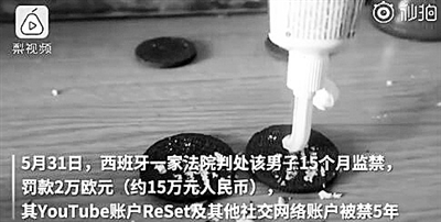 网红骗流浪汉吃牙膏馅奥利奥的视频曾火爆网络。近日,西班牙一家法院判处该网红15个月监禁,罚款2万欧元(约15万元人民币),其社交网络账户被禁5年。