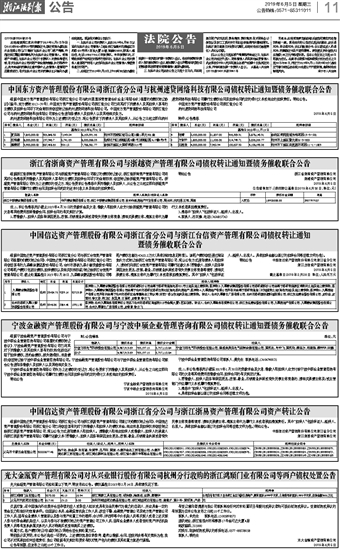 浙江省浙商资产管理有限公司与浙越资产管理有限公司债权转让通知暨债务催收联合公告