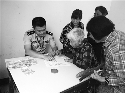 去年4月,金华江南警方破获一起主要针对农村老人的诈骗案,查明诈骗团伙共骗取60位老人钱款共计41850元,赃款全部被追回。去年年底开始,警方开展返赃活动。考虑到不少老人腿脚不便,汤溪派出所民警走村串户,将辖区18名被骗老人的钱款一一送到他们手上,少则几百,多则上千,确保老人们都能分毫不差地领到被骗的养老钱。通讯员 钱含情
