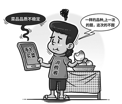 随着移动互联网的发展,菜市场加快从线下搬到线上,通过手机APP买菜成为不少年轻消费者的选择。手机买菜看上去方便快捷,但记者在采访中听到的吐槽也不少:菜品品质不稳定;图片和实物不符,货不对板;价格先便宜后贵等。
