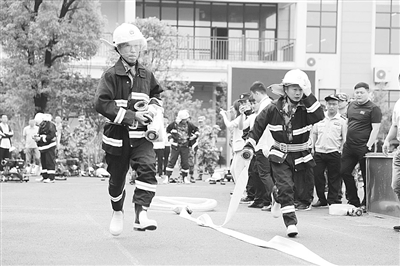 近日,在杭州师范大学附属仓前实验小学,杭州余杭区仓前街道举行了一场微型消防站技能比武大会。各网格中队、村社和相关企事业单位的38支微型消防站参赛队300余名队员奋力比拼,通过以比带练、以考促学,进一步提升了技能水平。通讯员 孙晨 钟佳菲