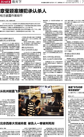 2019年6月11日,中国访问学者章莹颖被绑架失踪案开庭审理进入第6天。美国伊利诺伊州皮奥里亚联邦法庭宣布,已挑选出12名陪审员和6名候补陪审员。