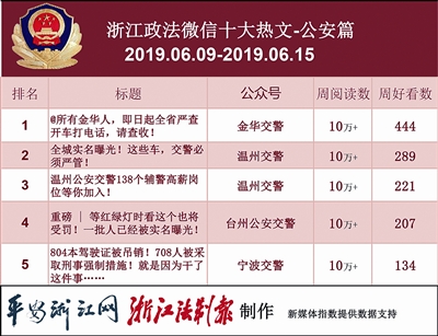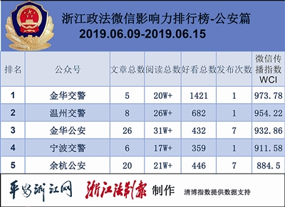 本期公安榜,“金华交警”时隔两周,重回影响力榜和热文榜冠军“宝座”。“温州交警”紧随其后,拿下影响力榜和热文榜“双料亚军”。值得一提的是,本期热文榜上,有5篇文章都达到了“10万+”的阅读量,其中4篇内容都与驾驶车辆的安全问题有关。