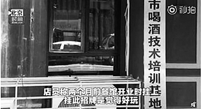 餐馆挂“喝酒技术培训基地”招牌 城管:已劝说商家取下