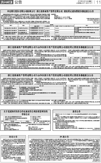 中信银行股份有限公司杭州分行 浙江省浙商资产管理有限公司 债权转让通知暨债务催收联合公告