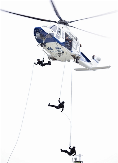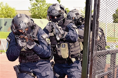 6月24日,全省公安机关“践行新使命、忠诚保大庆”实战演练在湖州市公安局综合训练基地举行。来自全省各地的公安特警、警保、警航等警种精英通过汇报演练,全面展现了浙江公安特警“经过特殊训练、拥有特殊装备、具备特殊技能、承担特殊任务”的能力水平和良好形象。