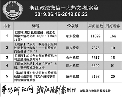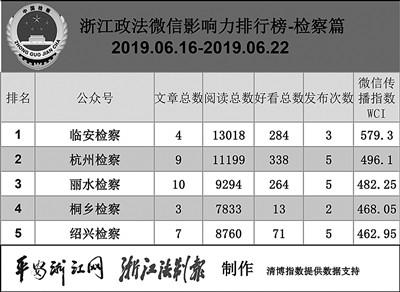本期检察院榜单,“临安检察”夺得影响力榜和热文榜“双料冠军”。其《【第511期】批准逮捕、提起公诉案件情况公布(6月10日至6月14日)》阅读数破万,在看数为达164,均远高于第二名。