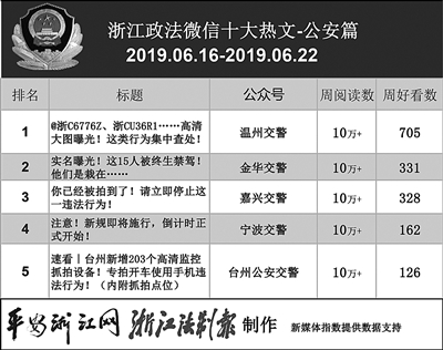 本期公安榜单,5篇阅读量达10万+的热文,均与“交通安全”相关。其中,“温州交警”的《@浙C6776Z、浙CU36R1……高清大图曝光!这类行为集中查处!》一文获得热文榜冠军,在看数远高于第二名。看来出行安全是读者们关心的大事。