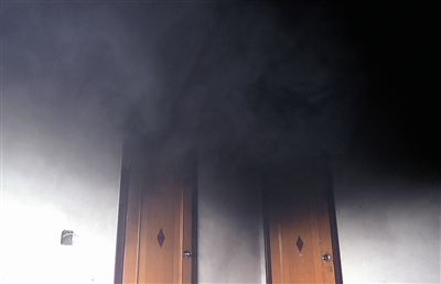 本报记者在与客厅相连的阳台上,听到报警声的第一时间,立即开始行动。但刚刚从阳台进入客厅,就明显感觉到里面的温度已经非常高,仅仅向前走了两步,就无法继续前行。记者戴着口罩,强屏着一口气,迅速往房间II走去,打开房门躲了进去。