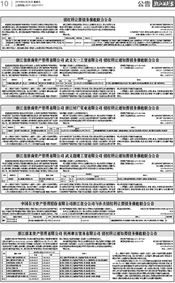 浙江省浙商资产管理有限公司 浙江树广实业有限公司 债权转让通知暨债务催收联合公告