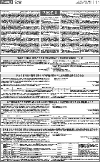 浙江省浙商资产管理有限公司与平阳如祥资产管理有限公司债权转让通知暨债务催收联合公告