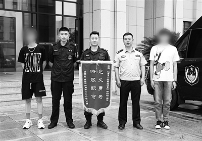 本报讯 7月1日下午,在杭州某高校读书的两个小伙特意将一面锦旗送到仙居县公安局巡特警大队,说要好好感谢巡特警队员郑阳阳的救命之恩。