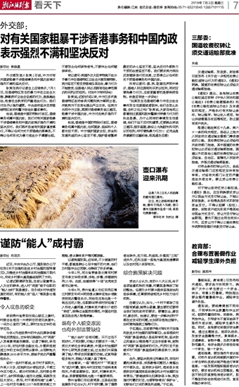 对有关国家粗暴干涉香港事务和中国内政 表示强烈不满和坚决反对