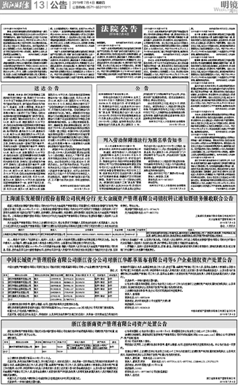 上海浦东发展银行股份有限公司杭州分行 光大金瓯资产管理有限公司债权转让通知暨债务催收联合公告