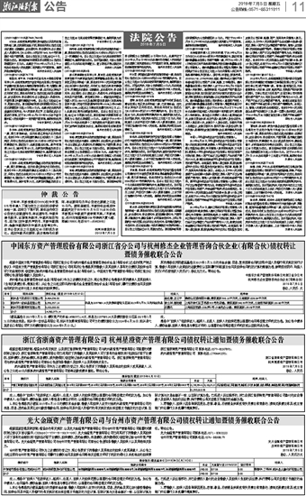 中国东方资产管理股份有限公司浙江省分公司与杭州修杰企业管理咨询合伙企业(有限合伙)债权转让 暨债务催收联合公告