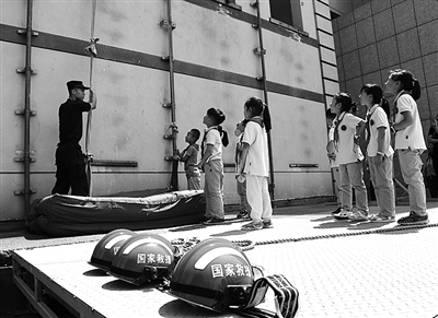 走进“尖刀队”,致敬“火焰蓝”。近日,杭州特勤消防救援大队举行暑期“小手牵大手”消防开放日活动,来自杭州市澎博小学新201中队的小学生和家长一起,走进消防队,聆听“全国抗震救灾模范”程本讲述抢险救援事迹,观看消防设备演示,体验应急逃生,学习消防常识,提高消防安全意识。