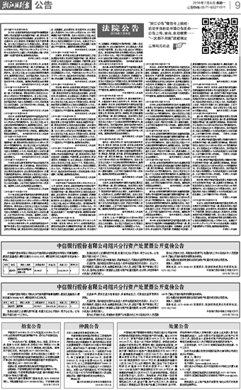 中信银行股份有限公司绍兴分行资产处置暨公开竞价公告