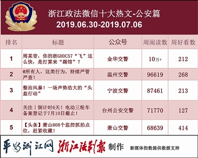 本期10万+热文依旧出现在公安榜,唯一一篇10万+来自“金华交警”的《周某青,你的浙GH0C57“飞”这么快,是打算来“踢馆”?》。酒驾?超速?这篇文章里全部曝光!交通事故频发,希望各位司机能够规范行车,别让亲人泪两行。