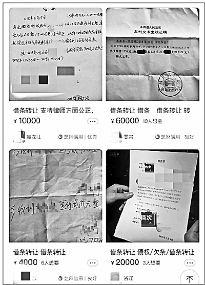 记者日前在某二手转让平台搜索发现,输入“借条转让”“债权出售”便有大量出售信息出现。卖家描述大致相似,多为“没精力要账”“急需用钱”,所以才低价转让欠条,但形式各有不同。
