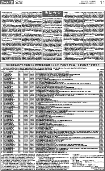 浙江省浙商资产管理有限公司对良精集团有限公司等61户债权处置公告户企业债权资产处置公告