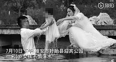 拍婚纱照新人救起落水女童