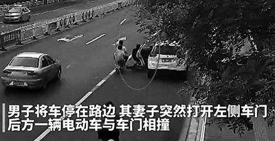 7月14日,河北张家口警方公布一起典型开车门致人死亡事故。事发时,一名男子随意将车停在非机动车道,后座妻子突然打开左侧车门,与后方一辆电动车相撞,骑车人头部受伤抢救无效死亡。夫妻二人承担事故全部责任。提醒:一定要确认安全再开车门!