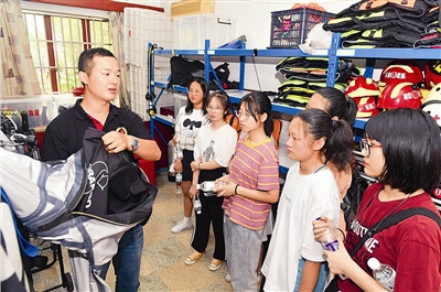 连日来,由共青团东阳市委、市红十字会主办的“”大学生暑期社会实践活动,在东阳市红十字救援队队部进行,参加活动的大学生、高中生将在40天内进行专业救援技能训练和实战救援体验。图为学生们听救援队员介绍装备的使用方法。