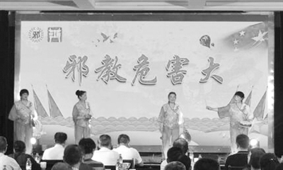 近日,嘉兴市反邪教宣传月正式启动。活动以文艺的形式拉开序幕,拨子书《法轮功罪滔滔》、三句半《邪教危害大》、小品《平安建设靠大家》等节目,用群众喜闻乐见的形式,向大家宣传邪教的危害,教育群众远离邪教。