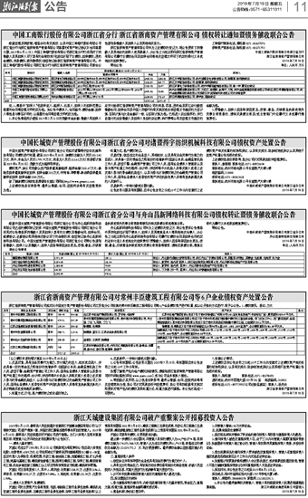 中国长城资产管理股份有限公司浙江省分公司对诸暨得宇纺织机械科技有限公司债权资产处置公告