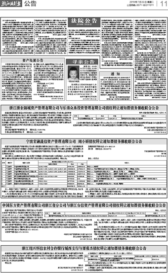 中国东方资产管理有限公司浙江省分公司与浙江台信资产管理有限公司债权转让通知暨债务催收联合公告