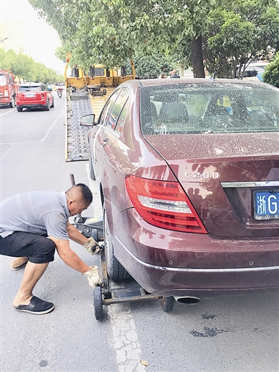 小陈前往停车场的同时,联系了附近的拖车公司。当晚6点多,拖车公司将熊女士的奔驰车拖去法院。整个过程中,熊女士都没有现身。小陈说,接下来他们会联系熊女士,如果她仍不还钱,法院会将对奔驰车进行司法拍卖。