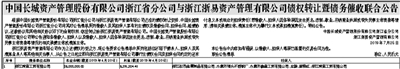 中国信达资产管理股份有限公司浙江省分公司 与浙江台信资产管理有限公司债权转让通知暨债务催收联合公告