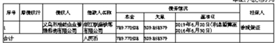 | 单位: 人民币万元 注:1、清单中“担保人”包括保证人、抵押人、出质人,担保人的担保范围以签署的合同等法律文件约定为准。如公告中债务人、合同编号、债权金额、担保人等信息与事实不符的,以签署的合同等法律文件约定为准。 2、本公告清单列示截至2019年6月20日的贷款本金余额,借款人和担保人应支付给义乌市浩然企业管理咨询有限公司的利息、罚息、违约金及其它应付款按借款合同、担保合同及中国人民银行的有关规定或生效法律文书确定的方法计算,实际计算与欠息金额不一致,以实际计算为准。已经进入诉讼程序的,并已由浙江省浙商资产管理有限公司垫付的应由借款人及担保人负担的诉讼费、执行费等以有关法律文书确定的金额为准。 3、若借款人、担保人因各种原因更名、改制、歇业、吊销营业执照或丧失民事主体资格的,请相关承债主体及/或主管部门代位履行义务或履行清算责任。 |