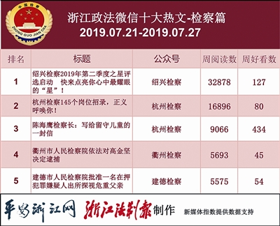 “老将一出手,就知有没有”,恭喜“绍兴检察”上位!本期热文榜上,“绍兴检察”的《绍兴检察2019年第二季度之星评选启动 快来点亮你心中最耀眼的“星”!》人气高涨。评选活动再次显示出强大的助攻力。