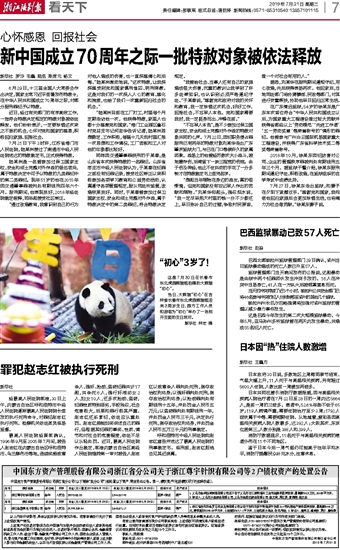 新中国成立70周年之际一批特赦对象被依法释放