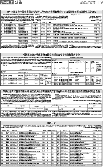 中国东方资产管理股份有限公司浙江省分公司债权催收公告