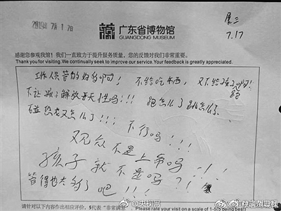 观众投诉博物馆不让孩子跑跳 广东省博物馆回应: