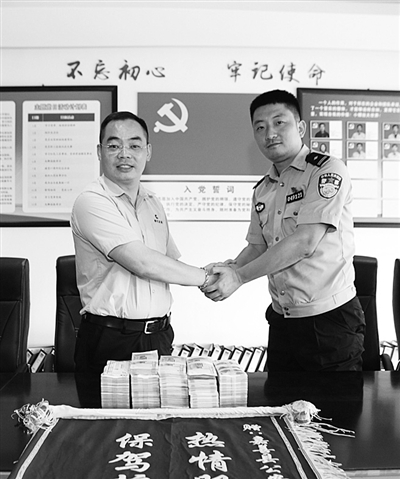 昨天上午,嘉善县公安局经侦大队会同惠民派出所民警,专程上门将追回的部分赃款交到某公司负责人手中。