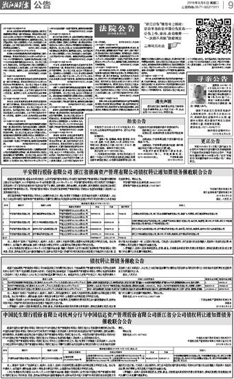 中国民生银行股份有限公司杭州分行与中国信达资产管理股份有限公司浙江省分公司债权转让通知暨债务催收联合公告