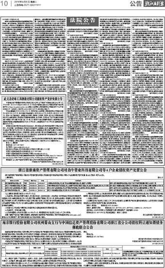 南京银行股份有限公司杭州萧山支行与中国信达资产管理股份有限公司浙江省分公司债权转让通知暨债务催收联合公告