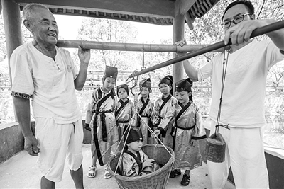 8月6日,长兴县夹浦镇香山村,孩子们正在体验称重等民俗活动。“立秋”将至,夹浦镇组织当地孩子和“小候鸟”一起体验称重“贴秋膘”、吃西瓜“啃秋”等节气民俗,感受中华传统文化。通讯员 谭云俸 摄