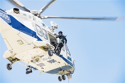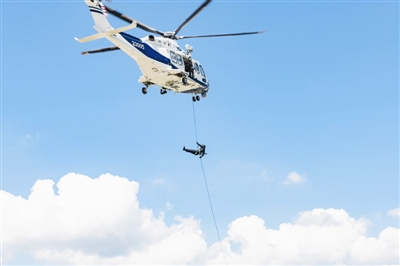 7日,金华市公安局空中突击力量训练在东阳市横店镇暂时告一段落。根据统一安排,金华市公安局在省公安厅警航队的指导下,组织婺城、金东、义乌、东阳、永康、磐安、机关等地16名特警突击队员,开展了为期6天的空中突击力量训练。在6天时间里,参训的特警队员针对基础理论、地面模拟、空中索降等科目,逐步提升空地联合治安防控能力。今后,此项技能将逐步应用于应急救援、警力快速投放、空中打击等场景。通讯员 方萌 摄
