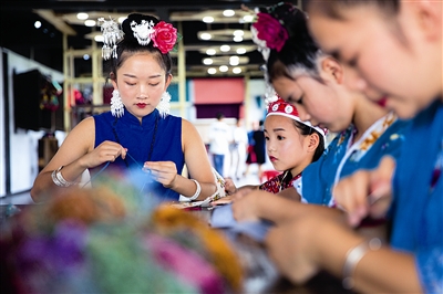 “我们将传统苗族工艺和现代设计结合,打造苗绣文创产品。”公司董事长、非遗苗绣传承人龙禄颖介绍。据悉,在杭州临安区的帮助下,该公司运用“民族工艺+电商”的方式,将苗绣文创产品销往全国各地,从而实现绣娘在家门口就能上岗就业。