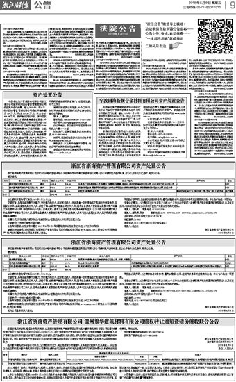 浙江省浙商资产管理有限公司 温州繁华建筑材料有限公司债权转让通知暨债务催收联合公告